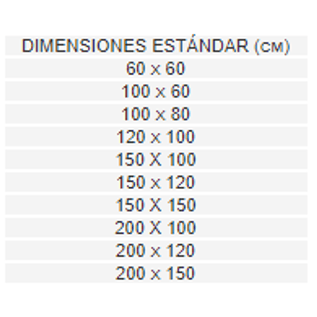 - Dimensiones estándar y a pedido
